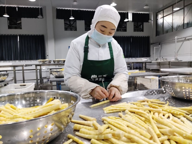 图为云南省昭通市镇雄县群众在当地一家竹笋加工企业工作。 新华社记者 林碧锋 摄