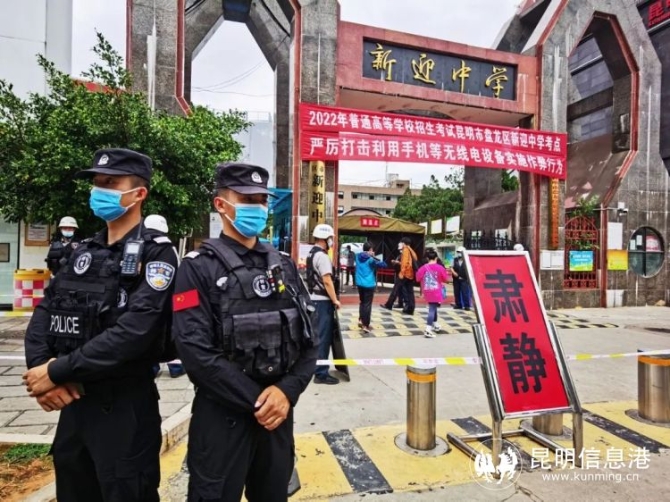 6月7日至9日,2022年全国普通高等学校招生统一考试举行。昆明市共有14个考区、42个考点、1644个考场,4.7万余名考生参加考试。昆明公安全体民警辅警按照既定部署,在岗履职,全力以赴投入高考安保工作圆满完成各项安保任务。