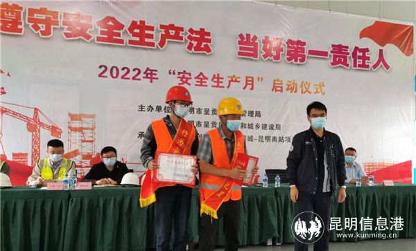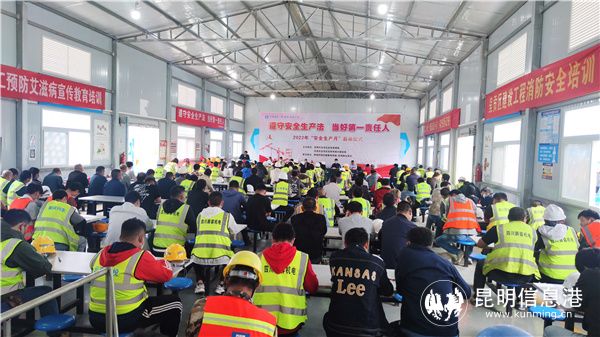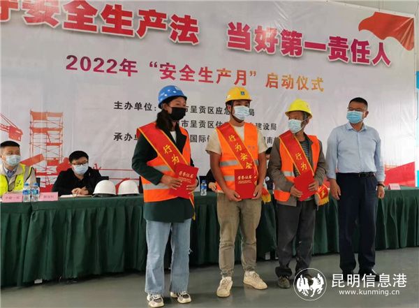 昆明信息港讯 记者劳学丽 通讯员张金栋 牟志君 6月9日,明市呈贡区应急管理局、昆明市呈贡区住房和城乡建设局主办的“2022年安全生产月”启动大会,在中国建筑一局(集团)有限公司鹏瑞利国际健康商旅城-昆明南站项目举行,呈贡区在建工程项目代表、班组长、工人等300余人参加。