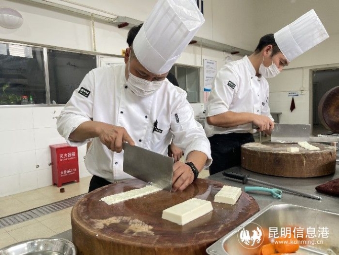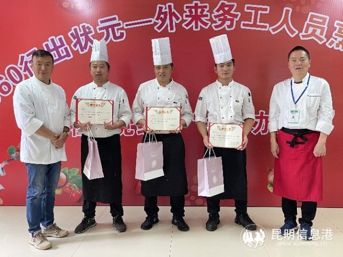 昆明信息港讯 记者龙泉积 麻婆豆腐、青椒银芽肉丝、柠檬黄瓜、三色冷拼......一盘盘美味的菜肴,让人大快朵颐。6月10日,在官渡区关上街道双凤社区举行的外来务工人员烹饪比赛现场,外来务工人员中的“厨艺大师”们纷纷拿出看家本领,比拼厨艺。