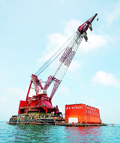 “南海一号”沉船整体打捞现场作者提供/光明图片