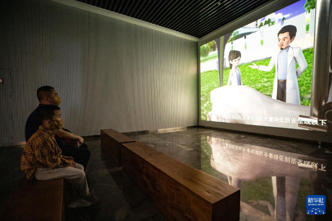 6月9日,在三峡文物科技保护基地,观众在科普课堂观看文物科普视频。新华社记者 黄伟 摄