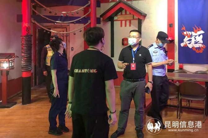 昆明信息港讯 记者曹月 6月10日,护国街道组织辖区派出所、市场监管所、城管中队、街道综治办、应急处置中心,同时邀请区消防救援大队参与成立联合专项检查组,对景星片区、金牛街片区的酒吧、密室逃脱店、桌游店等娱乐场所开展安全隐患专项排查整治。