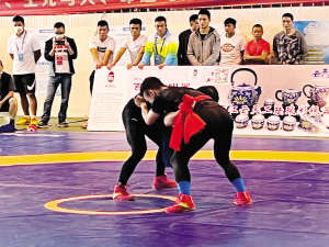 赵俊琨在摔跤项目男子格(彝族式)比赛中。