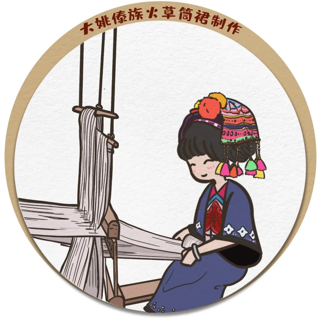 “火草筒裙”是采集山野间一种上为绿叶,下背面为洁白火草绒的多年生草本植物—“火草”的火草绒捻成线团,再纺织而成的。