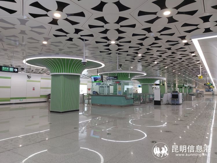 华山西路站临近翠湖公园,而翠湖被誉为镶嵌在昆明城的“绿宝石”。在历史的发展长河中成为昆明一张极具代表性的“文化名片”。顶部造型采用建筑木格窗及水面自在飞翔的红嘴鸥为设计元素,呈现无数海鸟在波光粼粼的水面上自由翱翔,像极了满天星辰闪烁着那是老昆明人的记忆,体现人与自然和谐共生的美好意境。