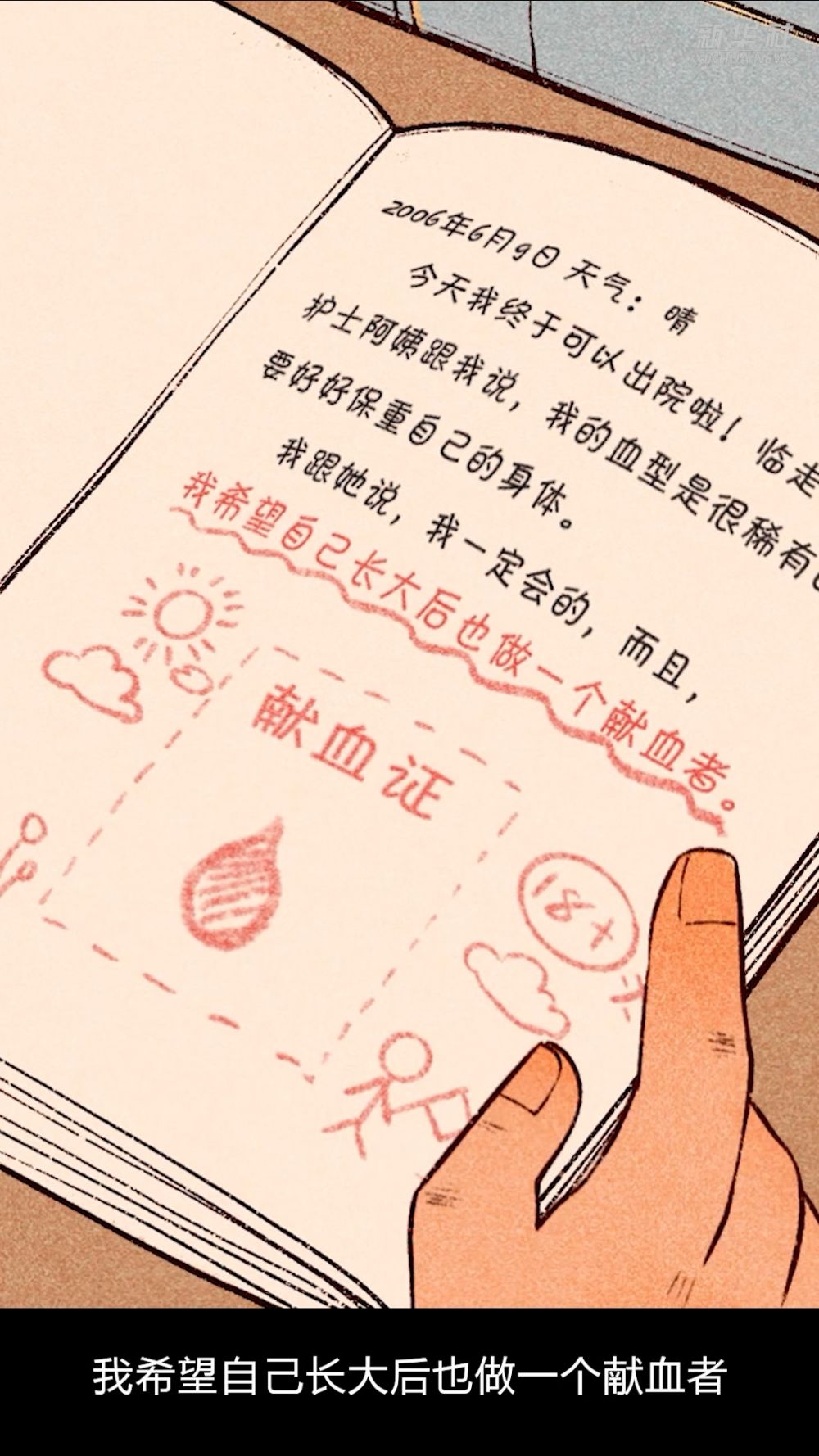 有人可能疑惑,献血究竟为了什么?有人可能茫然,认为献血离自己很遥远。我们通过一组小动画,来聆听一位献血者的故事,你可能会对献血这件事情有更加深刻的了解。