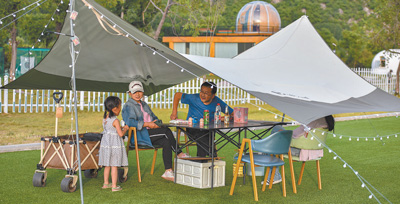 “三五好友结伴而行,喝茶赏景,好不惬意。”程晓说,“现在市场上有很多比较成熟的露营产品可选择,有的只提供帐篷等设备,需要自备餐食,有的是全包,吃住游所需都准备好了,还有些个性化的产品会提供桌游、羽毛球等休闲项目。”在体验过几次露营后,程晓正打算带上父母一起户外郊游。