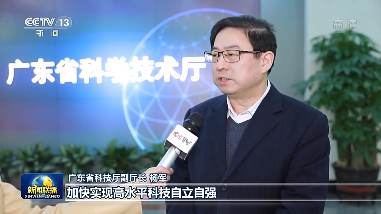 广东省科技厅副厅长 杨军:总书记指出,加快实现高水平科技自立自强。牢记总书记嘱托,广东加快实施创新驱动发展战略,积极构建以基础研究,技术攻关,成果产业化,科技金融,人才支撑的全过程创新生态链。