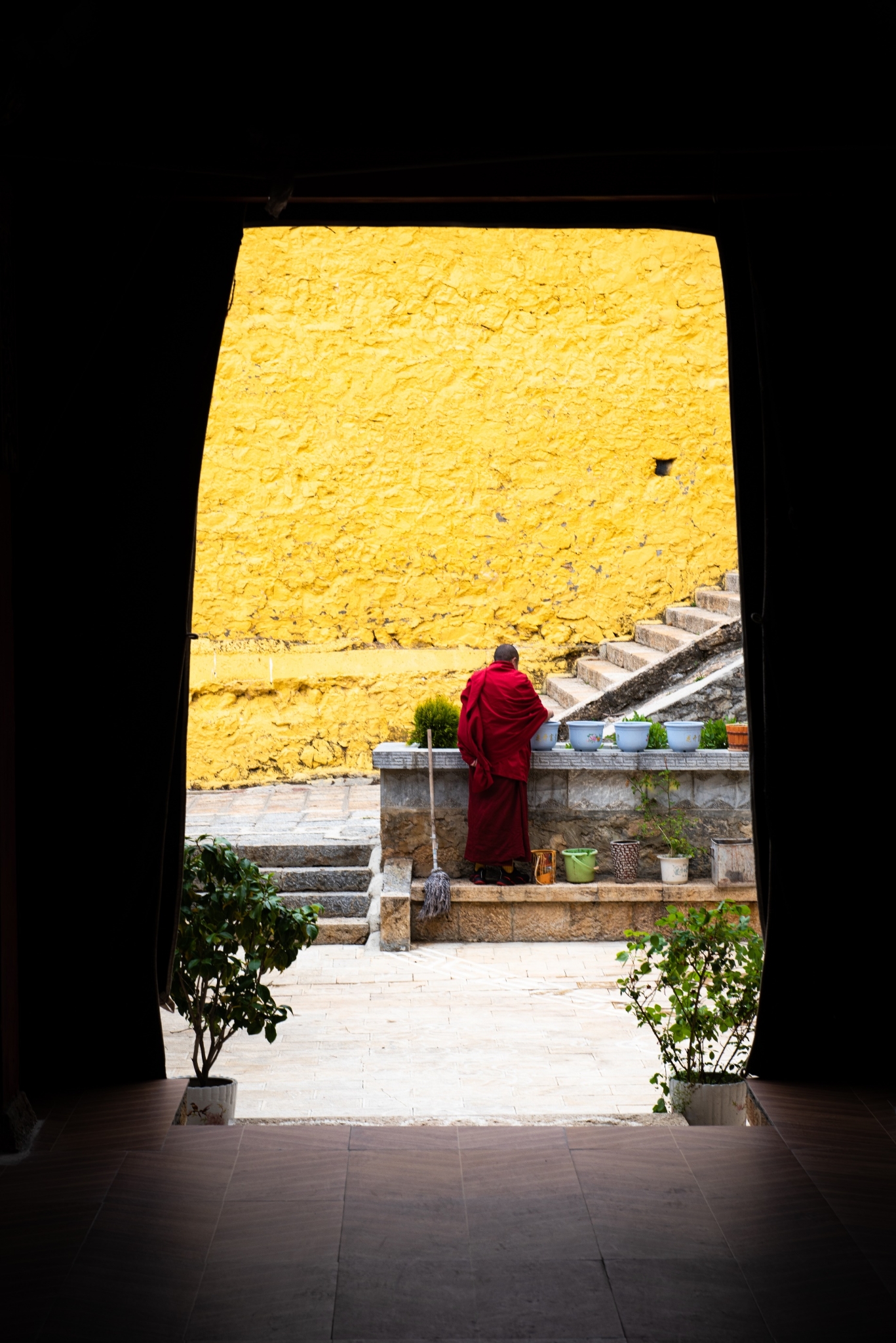 从门口进入,沿台阶向上攀爬,每靠近一步,就会感觉内心又宁静了几分。天上不时有红嘴山鸦盘旋,据导游介绍,红嘴山鸦在当地被称为吉祥鸟。导游介绍了很多,我只记得“56个民族相互尊重、相互扶持、相互理解,中国才能像现在一样稳定发展”这句话。我对这句话十分认同,和当地藏族朋友擦肩而过时,他们笑着说的“扎西德勒”就是对这句话最好的诠释。