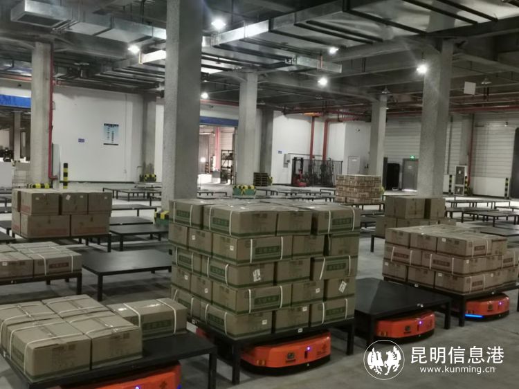 为了进一步提高仓储和物流水平,云南腾晋物流股份有限公司还与中国联通合作,开展5G智慧园区合作建设和运营。目前,双方共同打造完成了物流园区内5G专网及5G+AGV系统的建设,为仓储物流行业数字化转型打造出了一套可推广、可复制的样板。腾俊国际陆港数字化仓库运营部智能仓主管王涛介绍,智能仓系统启动后,区域内的自动存储机器人、搬运机器人、自动流水线会瞬间“苏醒”,将货架、堆垛架、拣货区等进行高效定位、串联,实现货物的自动收集、自动排序、自动出入库等操作流程。