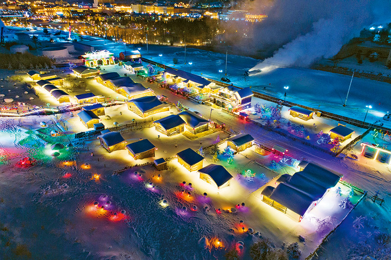 图为阿尔山市郊的特色雪村夜景。 王正/摄