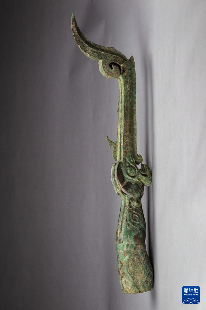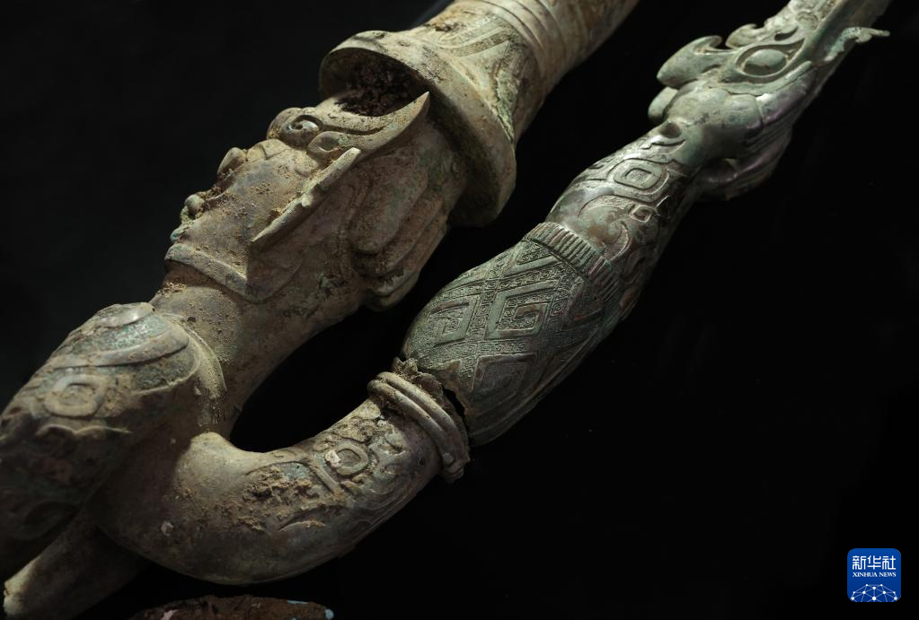 6月15日拍摄的1986年2号“祭祀坑”出土的青铜鸟脚人像残部。