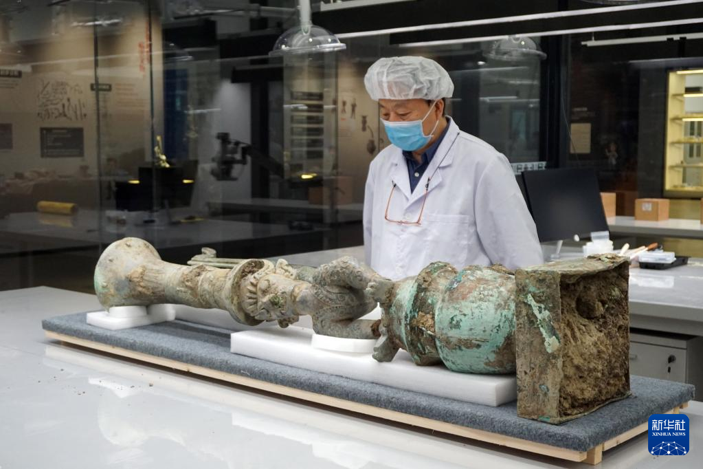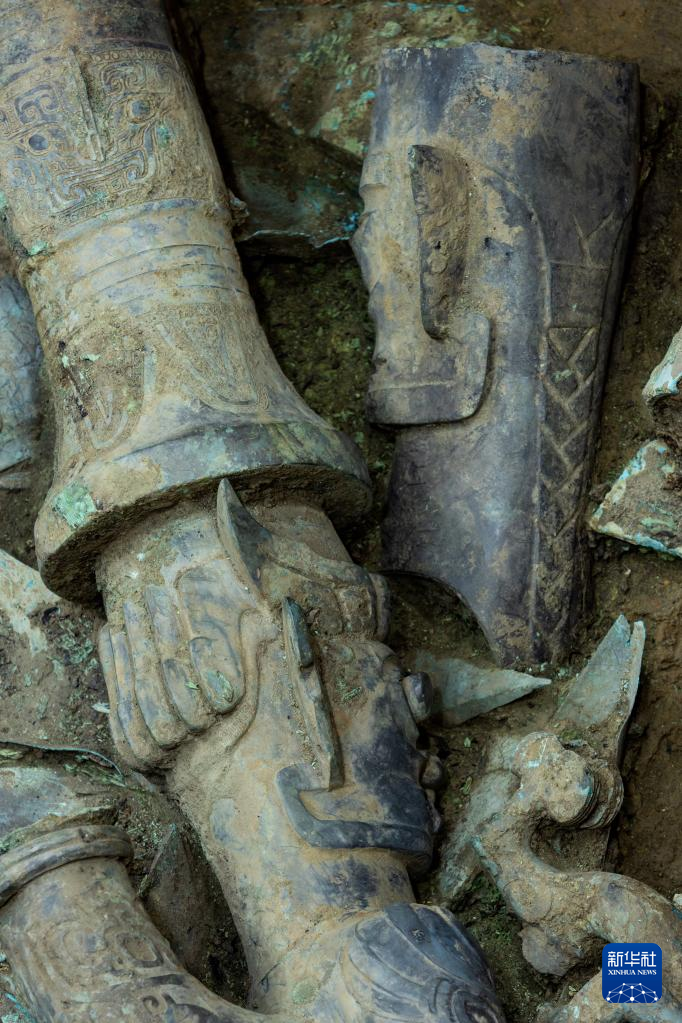 四川省文物考古研究院三星堆考古研究所所长冉宏林介绍,跨坑文物拼对,证实了以前的推测,对后续文物修复有重要指导意义。(新华社 记者童芳 肖林)