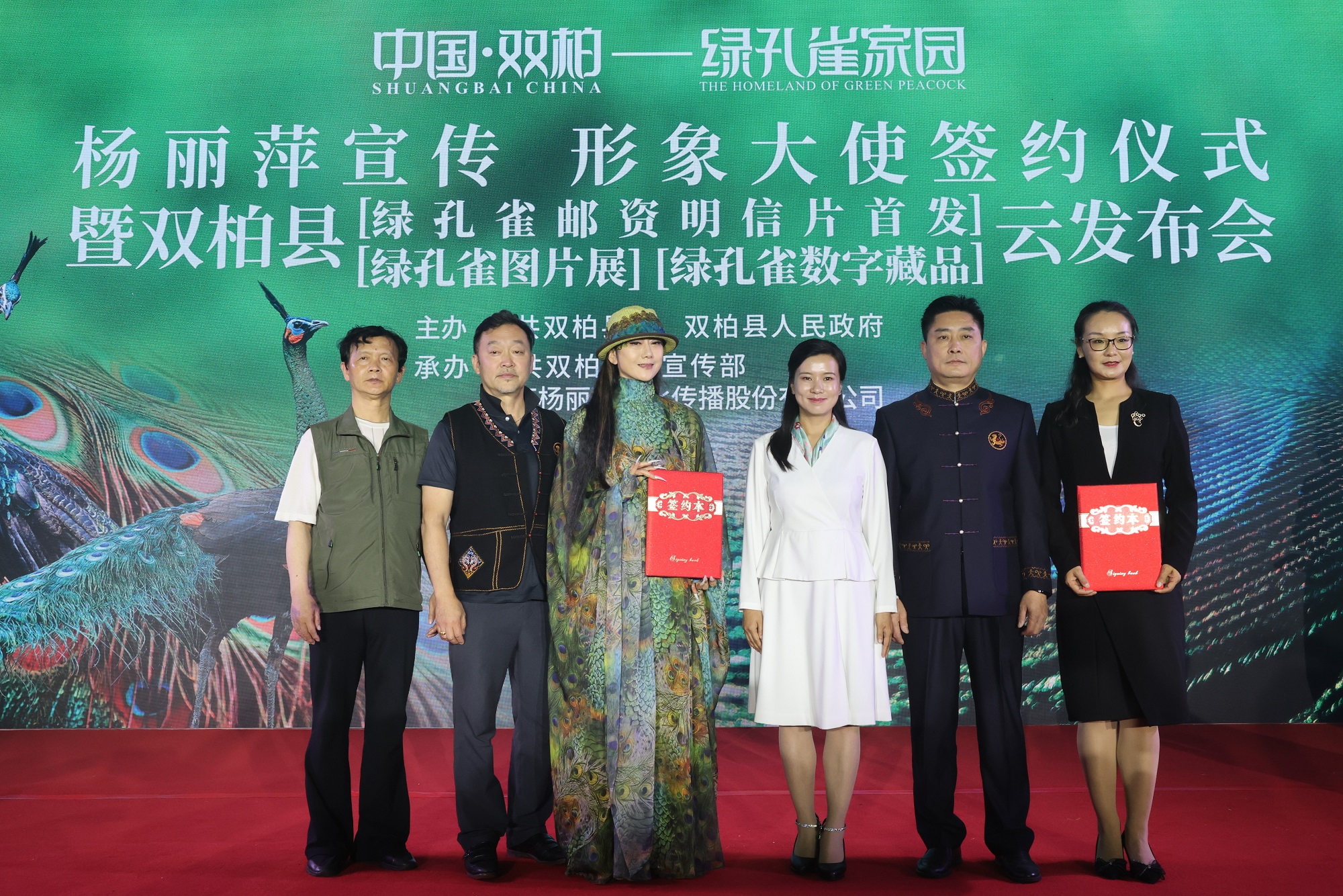 中国·双柏——绿孔雀家园 杨丽萍宣传、形象大使签约仪式合影。