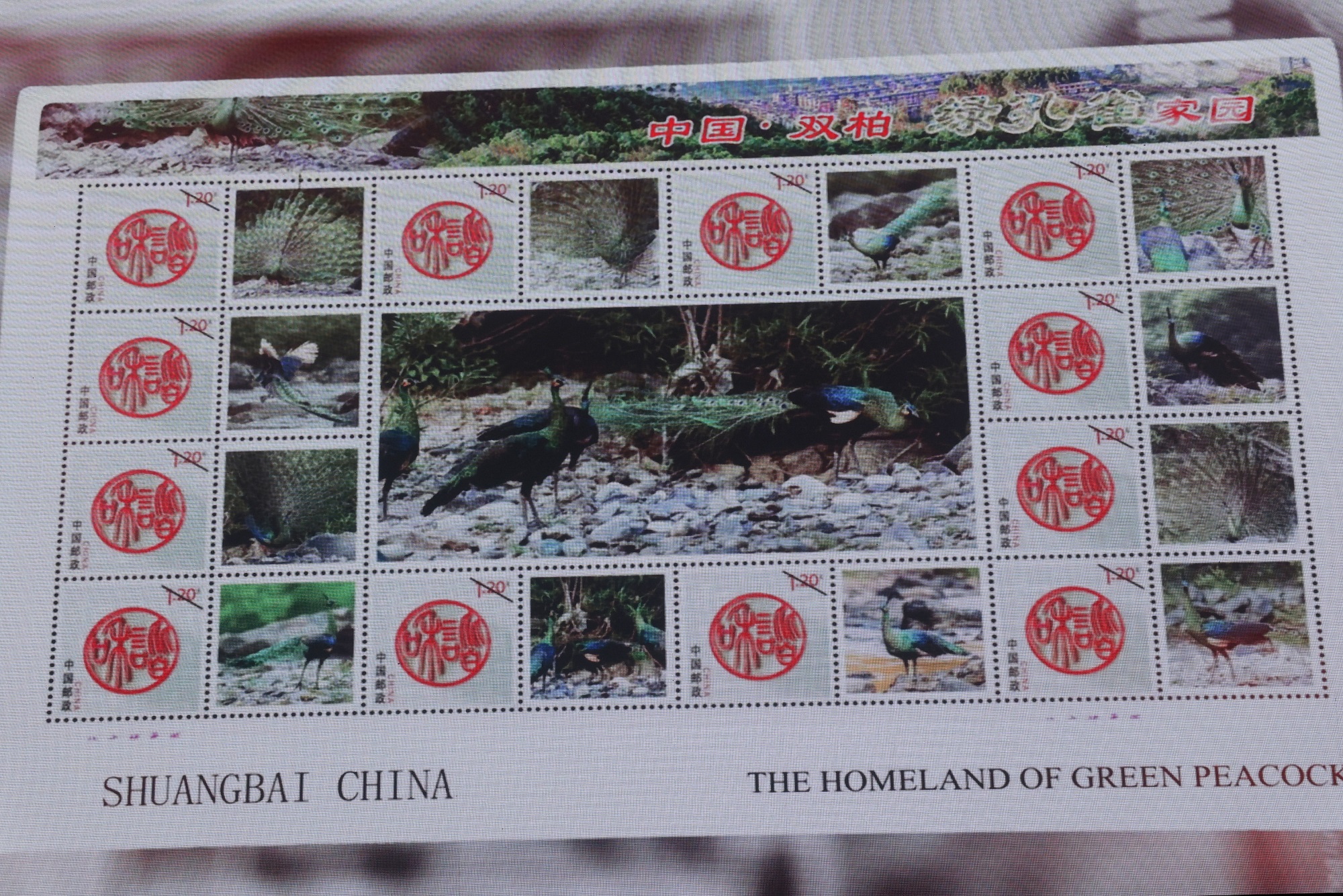 中国·双柏——绿孔雀家园 双柏县绿孔雀邮资明信片首发现场发布展示的绿孔雀邮资。