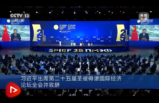 6月17日晚,国家主席习近平应邀以视频方式出席第二十五届圣彼得堡国际经济论坛全会并致辞。