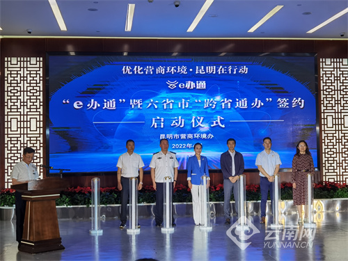 6月17日,昆明市举行“e办通”启动暨六省市“跨省通办”签约仪式。依托“e办通”自助服务终端,昆明、黑龙江、广西、海南、厦门、郑州六省市之间实现“跨省通办”。