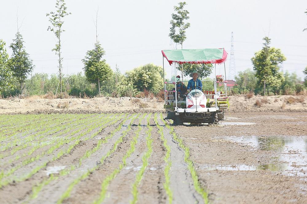 近日,在阜宁县三灶镇十灶村,阜泰谷物种植专业合作社负责人王熙正在田头查看水稻栽插情况,合作社今年还是和江苏阜顺生态农业科技有限公司合作,800多亩地都用来繁种。“一亩地一年种子收入差不多是普通稻麦种植收入的两倍,优质良种很受市场欢迎。”