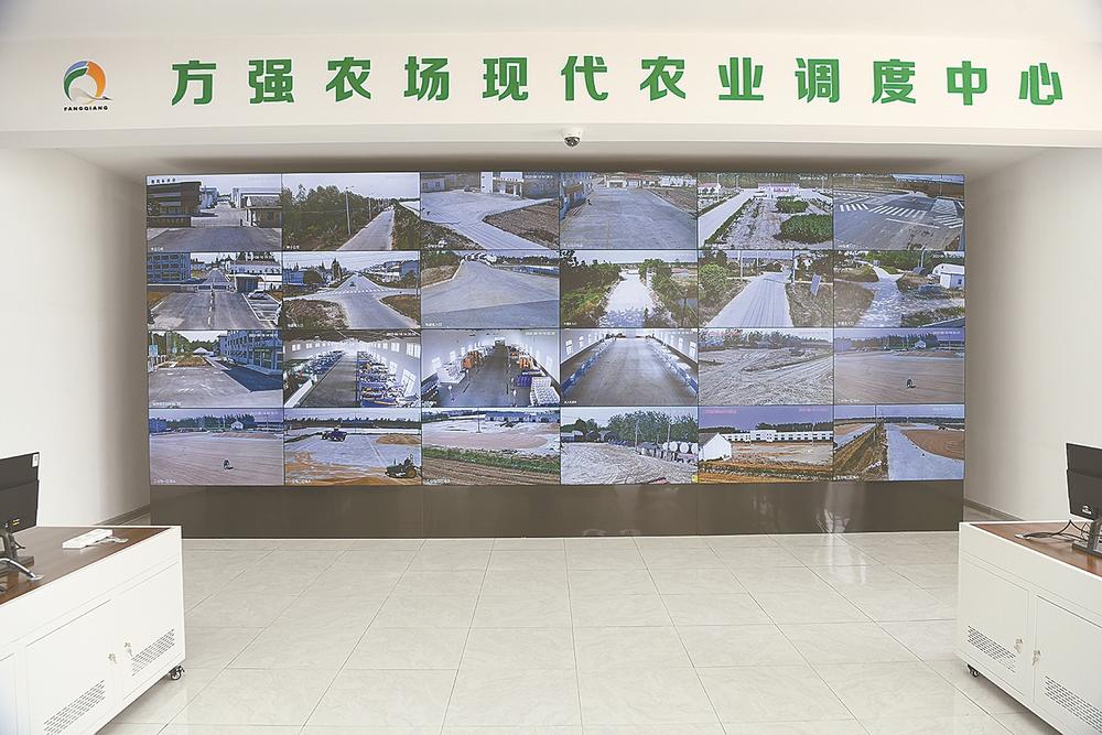 走进方强农场现代农业调度中心,工作人员熟练操作控制台,农场4.5万亩农田被细分成1000多个田块,每个田块的基本信息、种植进度等信息在电子屏幕上一览无余。“农场投资800多万元,建成了调度中心,同步配合高标准农田建设,有效提升农场信息化程度。”王玉民介绍。