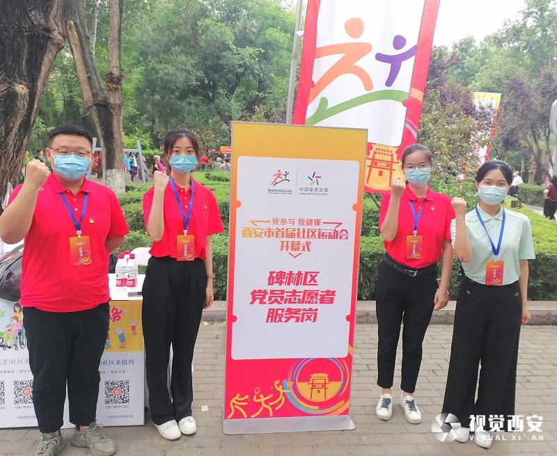 6月10日清晨,身为西安市碑林区基层单位的一名预备党员,臧珂早早梳妆完毕,她穿上那件淡绿色的志愿者服装,一路小跑赶到了长乐公园里的"西安市首届社区运动会碑林区党员志愿者服务岗"。另外三位同样年轻的党员志愿者贺悦、张嘉翔、王蓓蓓已经在岗位上等她了,他们三人的衣服都是红色的,而且胸口都佩戴着闪亮的党徽,这表明,他们都已经是光荣的共产党员了。