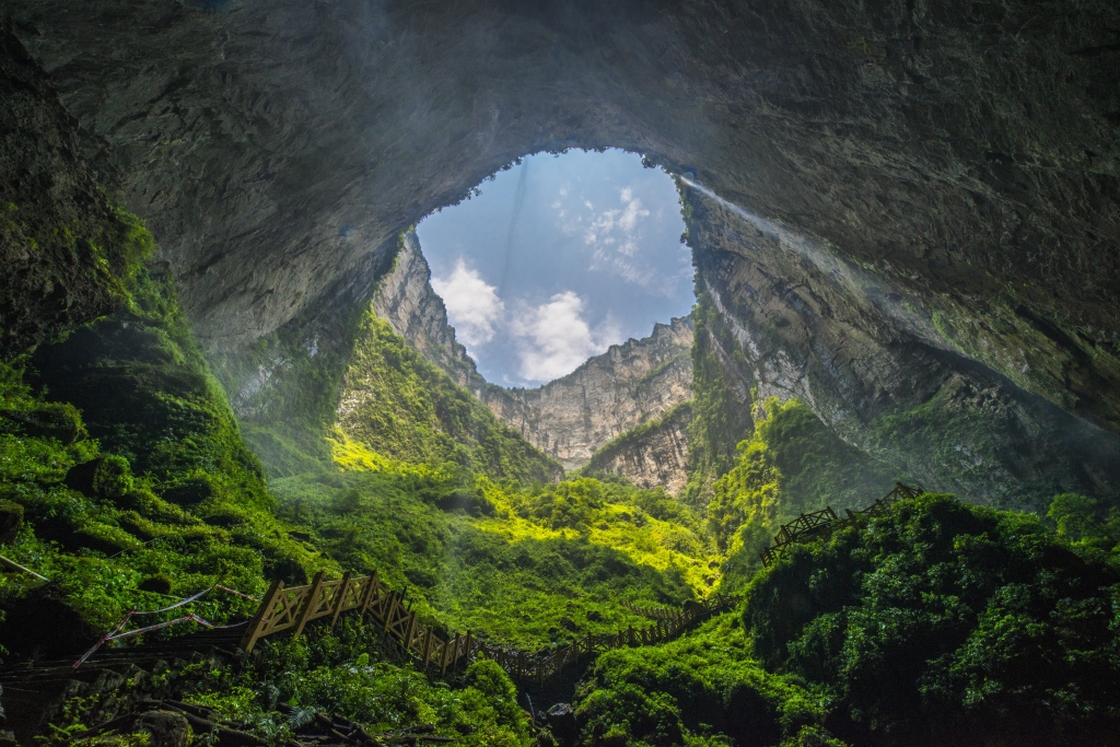 小寨天坑是长江三峡成因的活化石,是目前世界上发现的最大的喀斯特漏斗。