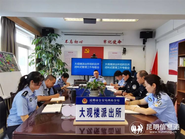 在昆明大观路两侧茂密绿荫掩映下,有一扇蓝色的大门与沿街商铺齐平,3层小楼质朴中不失威严,那便是昆明市公安局西山分局大观楼派出所,因毗邻“中国四大名楼”之一的大观楼而得名。