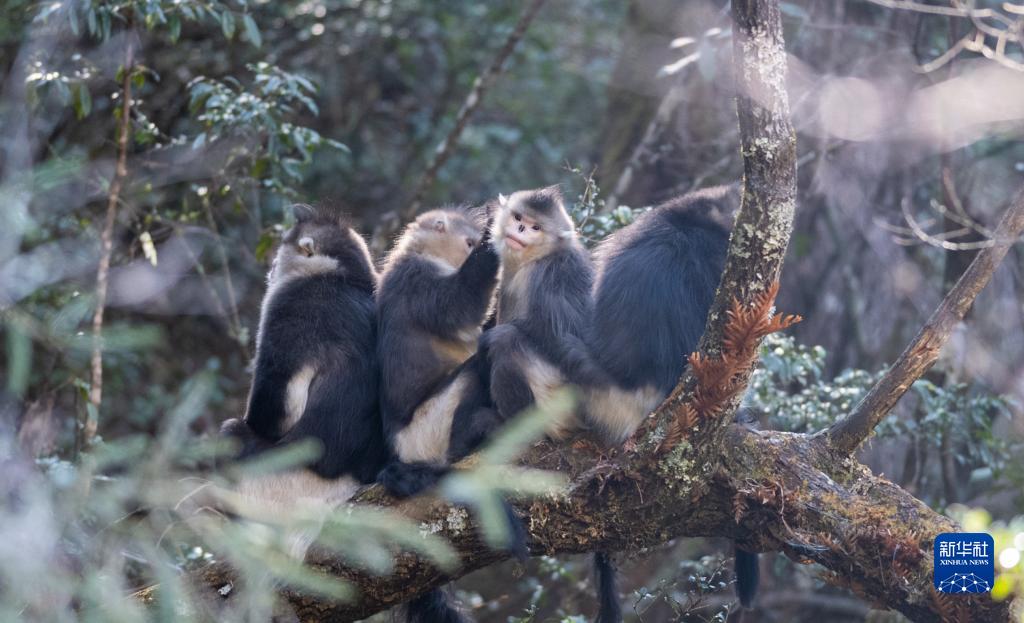 这是在云南白马雪山国家级自然保护区内拍摄的滇金丝猴(3月13日摄)。新华社记者 王冠森 摄
