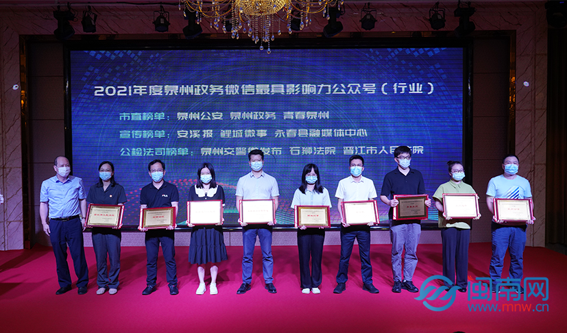 此次2021泉州政务新媒体影响力榜单,共发布2021年度泉州十佳政务微信公众号;2021泉州十佳政务视频号;2021年度泉州政务微信最具影响力公众号(行业)(各行业前三);2021年度泉州政务创新传播微信公众号。同时,中共永春县委宣传部荣获“2021年度泉州政务新媒体特别贡献奖”。