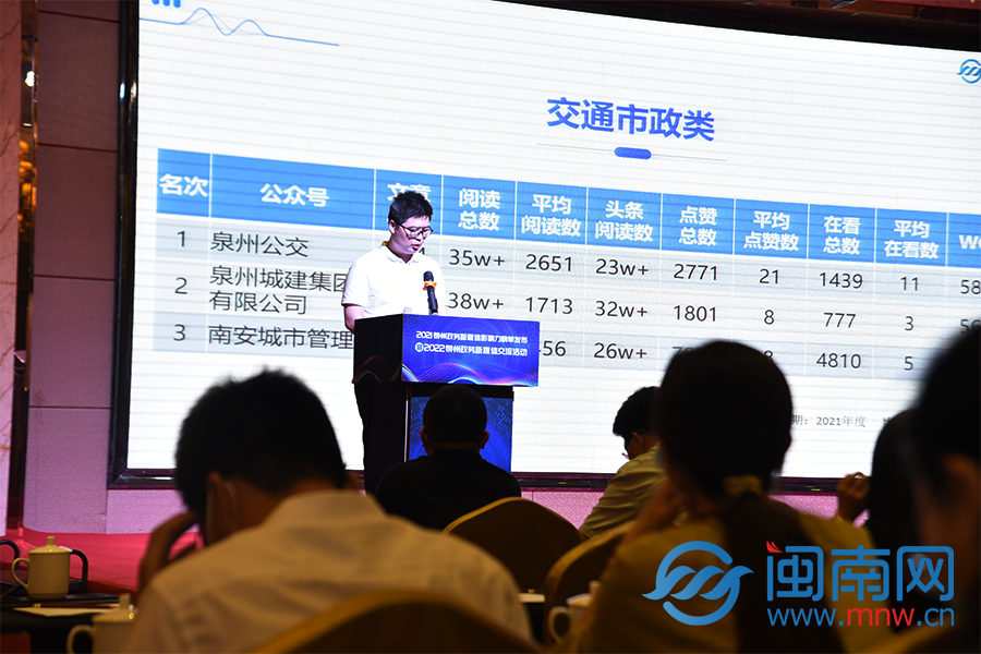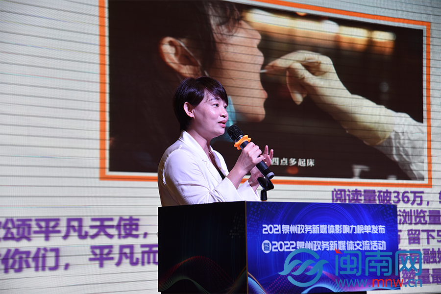 “泉州政务新媒体影响力榜单”每周发布一次监测数据,每年度发布一次年度榜单。闽南网编辑部总监任少杰现场介绍了2021年度泉州政务新媒体运营发展情况。