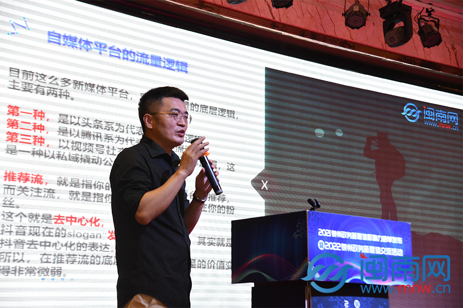 会上,资深媒体人、厦门大学外聘老师洪瑞麟,为大家分享了《做有区域影响力的视频号》。