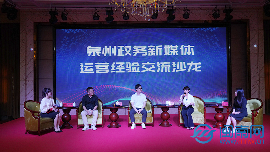 在沙龙分享环节,邀请到主题演讲嘉宾洪瑞麟老师,闽南网编辑部总监任少杰,永春县融媒体中心节目部主任陈晓玲,泉州文旅集团党委宣传部文宣主管、新媒体负责人陈丽娟,大家就泉州政务新媒体运营情况,展开深入的探讨和碰撞。