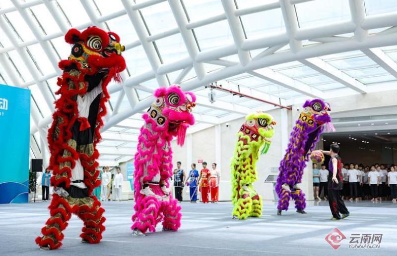 场外,一场视觉盛宴呈现在嘉宾面前,百余名来自云南民族大学的师生代表带来精彩的中国武术和健身瑜伽表演。除舞狮表演外还包括集体刀术、自选刀、自选剑以及双长穗剑表演,同时还有瑜伽经络排毒二十四式以及高水平瑜伽展示。