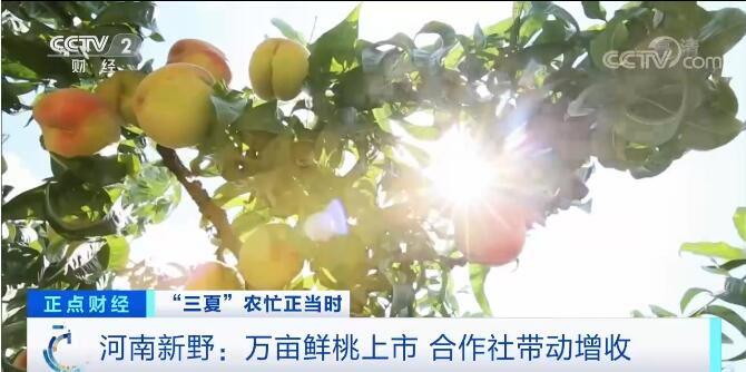 眼下也是桃子上市的时候。在河南新野新甸铺镇津湾村的万亩桃园,低矮粗壮的桃树上红彤彤的果实压满枝头。据了解,近年来津湾村成立专业合作社,并为村内的林果产品注册了商标,种植规模迅速发展扩大至万余亩,有效带动了当地农民增收致富。