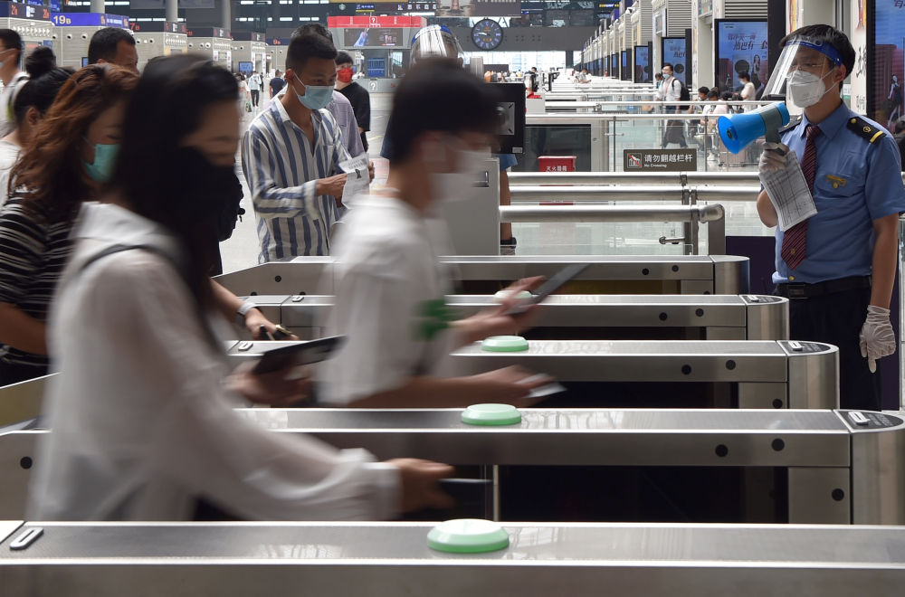 ↑6月20日,乘坐郑渝高铁G3403次列车的旅客在郑州东站进站乘车。新华社记者 李嘉南 摄