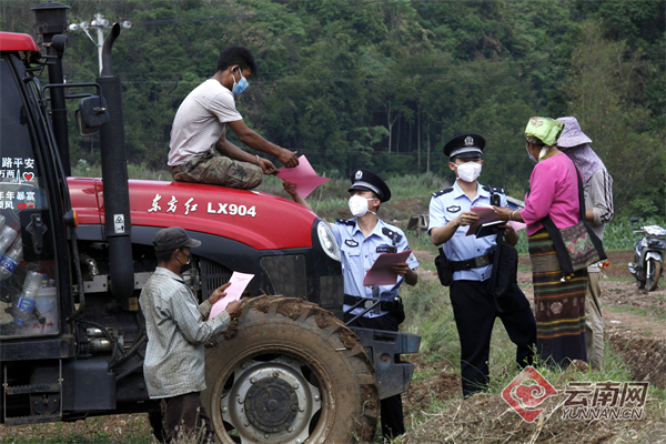 “咪涛(傣语音译,意为‘大妈’),举报涉毒犯罪可以申报奖励……”1月25日,该支队移民管理警察来到勐阿村农贸市场,通过发放宣传单、警用无人机喊话等方式,向村民宣传举报毒品违法犯罪的奖励。