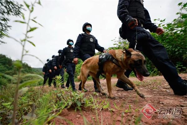 云南普洱边境管理支队民警携警犬开展边境巡逻