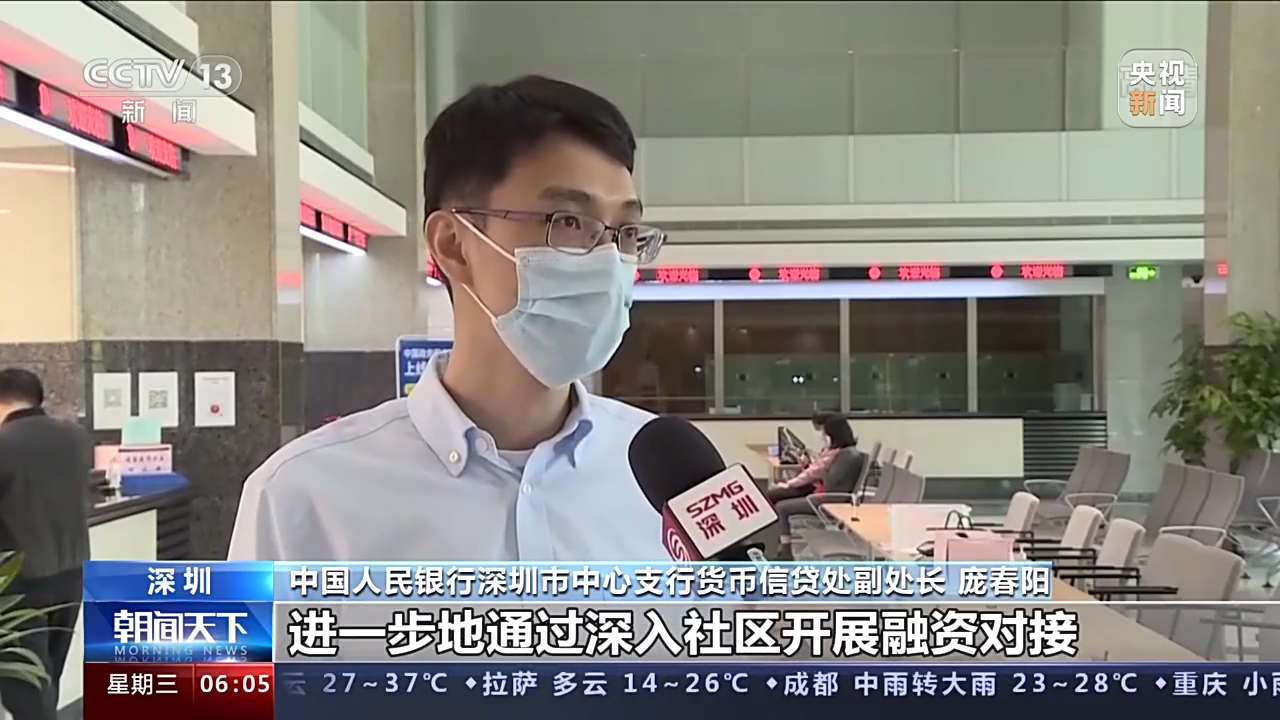 中国人民银行深圳市中心支行货币信贷处副处长 庞春阳:通过供应链金融等产品,保产业链供应链稳定,然后加大信用贷款和中长期贷款的投放力度,那么对于受疫情影响较大的,像餐饮服务业、批发零售业以及文体旅游这些接触型的服务业企业,以及个体工商户,我们也是鼓励金融机构进一步地通过深入社区开展融资对接。