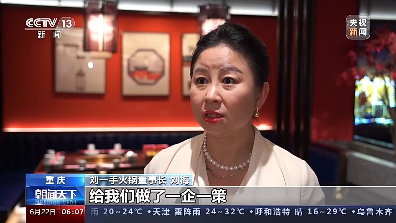 刘一手火锅董事长 刘梅:银行就主动找到我们,给我们做了一企一策,快速地制定了一个产品叫“火锅贷”。你看,现在这个店我们也开起来了,同时我们每一位员工的工资都发放了的。