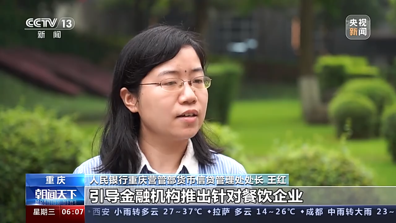 人民银行重庆营管部货币信贷管理处处长 王红:引导金融机构推出针对餐饮企业“一行一品”产品创新,累计推出40多创新产品。1—5月,金融机构已经为辖区的餐饮企业发放贷款56.8亿元,为1000户火锅企业发放贷款近5亿元。