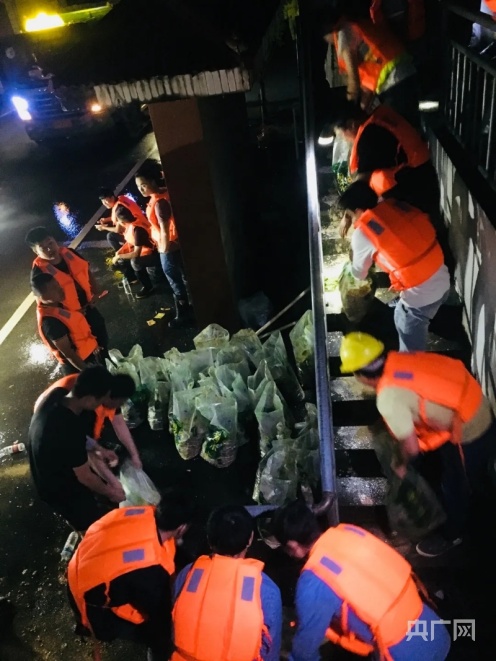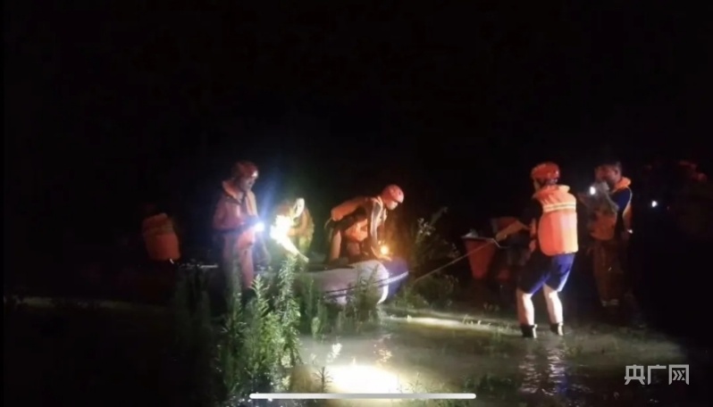 6月20日晚22点,消防救援支队抗洪抢险突击队、鸬鹚乡乡村干部和鸬鹚派出所干警齐心协力开展救援工作。(央广网发 程万海/摄)