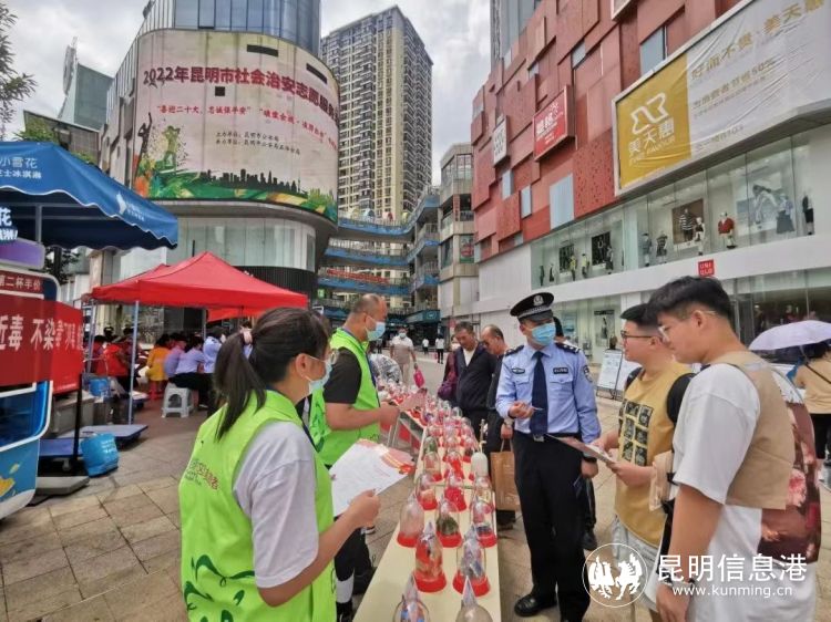 6月22日下午,分局联合黑林铺街道办事处、中信银行昆明分行在西城时代购物中心开展反诈宣传活动。