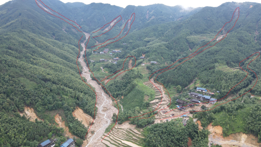 九溪村沟尾屯和岭背屯泥石流灾后全景