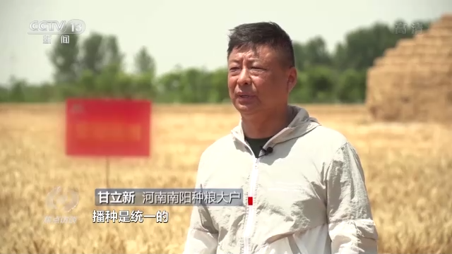 庄稼种得好,种子是关键。甘立新的示范田,种的是种植合作社统一提供的河南省优质小麦种子。甘立新说,现在种地,不仅有统一供应的良种,全程的科技指导,而且从播种、施肥、喷药到收割,全流程实现了机械化,种地更精细更规范,这也促进了小麦品质的提升。小麦优质优价,农民也得到了实惠。
