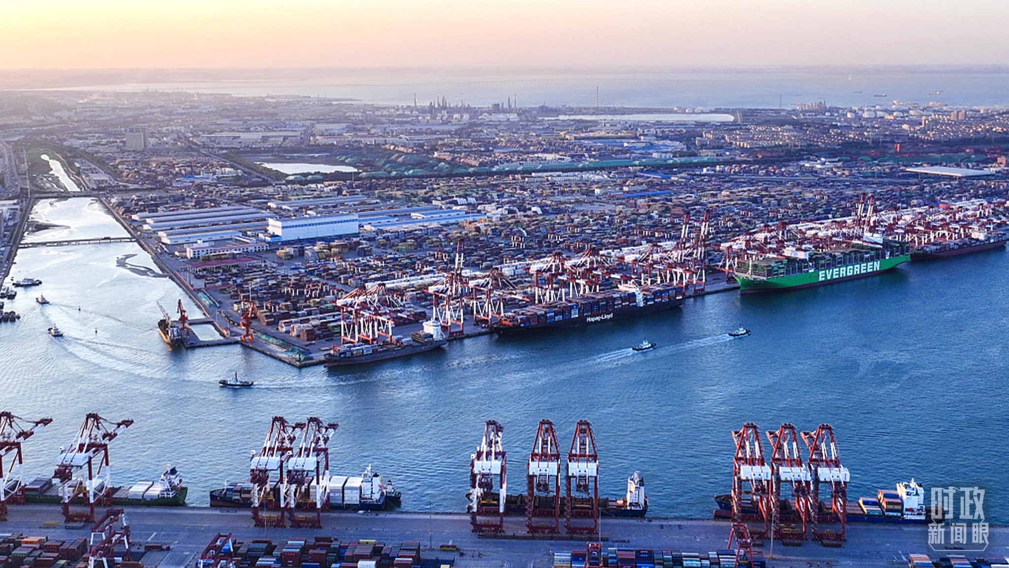 △2022年5月,山东青岛港,前湾集装箱码头车船如织。(图/视觉中国)