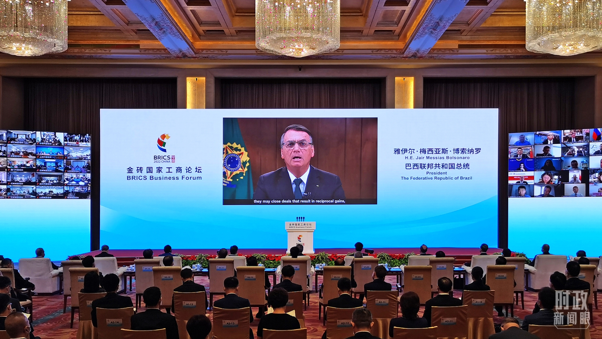 △巴西总统博索纳罗出席论坛开幕式并致辞。(总台央视记者杨波拍摄)