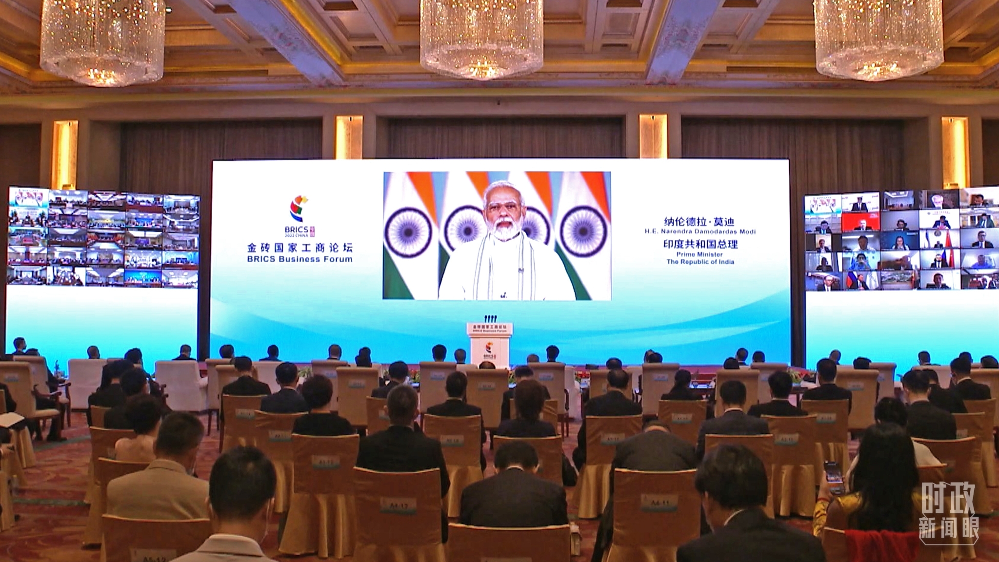 △印度总理莫迪出席论坛开幕式并致辞。(总台央视记者陆泓宇拍摄)
