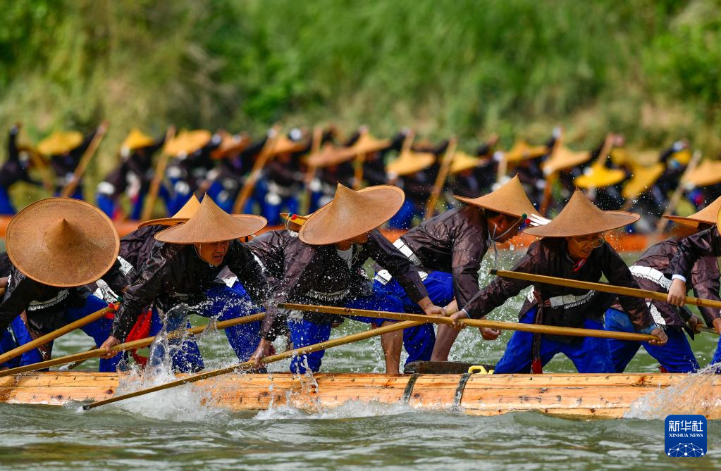 6月23日,苗族群众在贵州省台江县施洞镇清水江上赛独木龙舟。