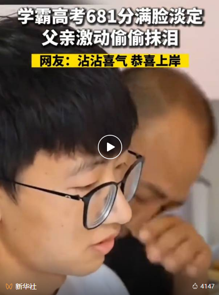 高考681分!他满脸淡定 父亲偷偷抹泪……