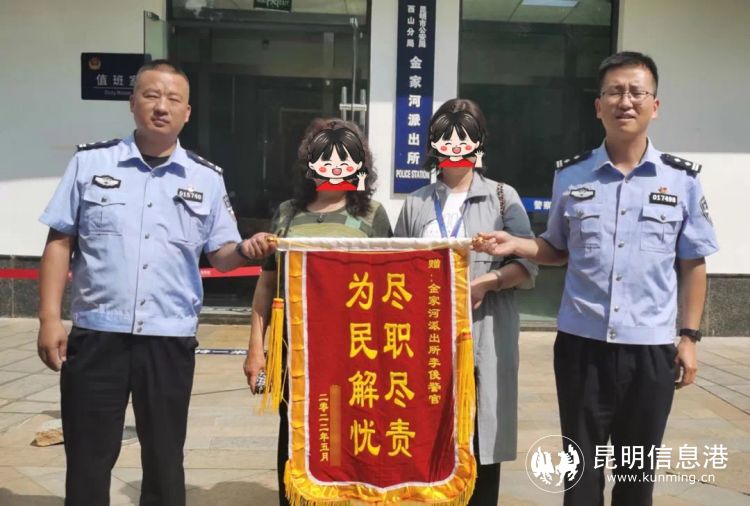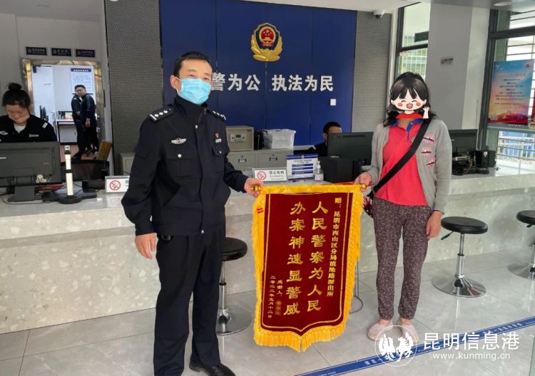 滇池路派出所民警经调取视频监控,发现钱包被群众惠先生捡到。经对接,惠先生将钱包归还给了柴女士。为表达谢意,柴女士当日便给民警送来一面写着“人民警察为人民、办案神速显警威”的锦旗。